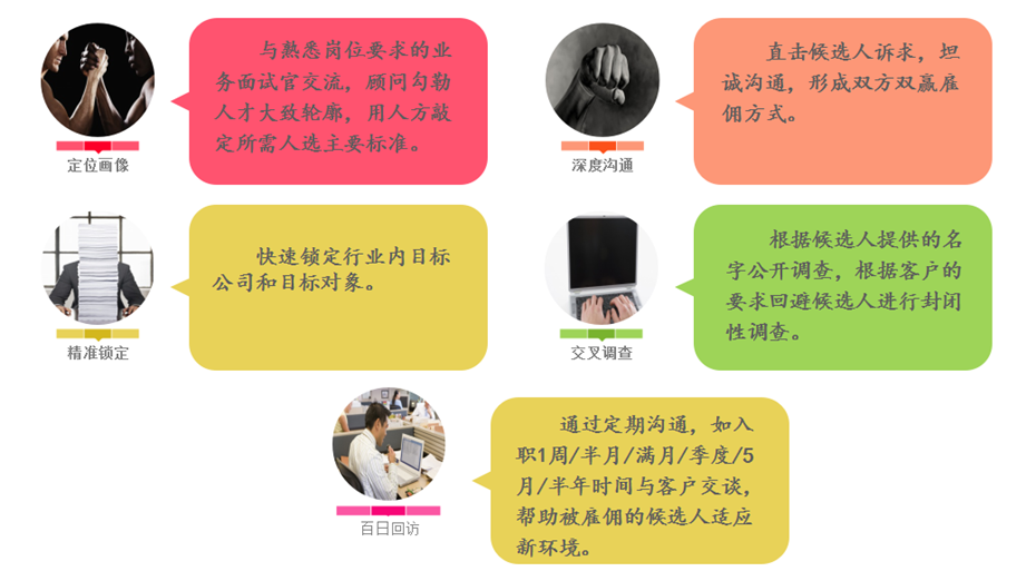 中高端人才獵頭招聘:為企業(yè)客戶提供專業(yè)的招聘戰(zhàn)略服務,如人才尋訪、甄別、專業(yè)人才定向挖掘、Mapping行業(yè)人才地圖、行業(yè)研究分析、市場薪資行情、企業(yè)人才規(guī)劃等。