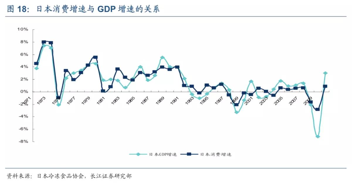 日本速凍食品行業(yè)進(jìn)入成熟期的時(shí)點(diǎn)要晚于日本的整體經(jīng)濟(jì)放緩。日本經(jīng)濟(jì)的增速從 1990 年代初期出現(xiàn)顯著下降,而由前所述我們知道大約在 2000 年前后日本速凍食品行業(yè)才開始進(jìn)入成熟階段,說明伴隨經(jīng)濟(jì)的發(fā)展速凍調(diào)理行業(yè)的增長持續(xù)性較––強(qiáng)。