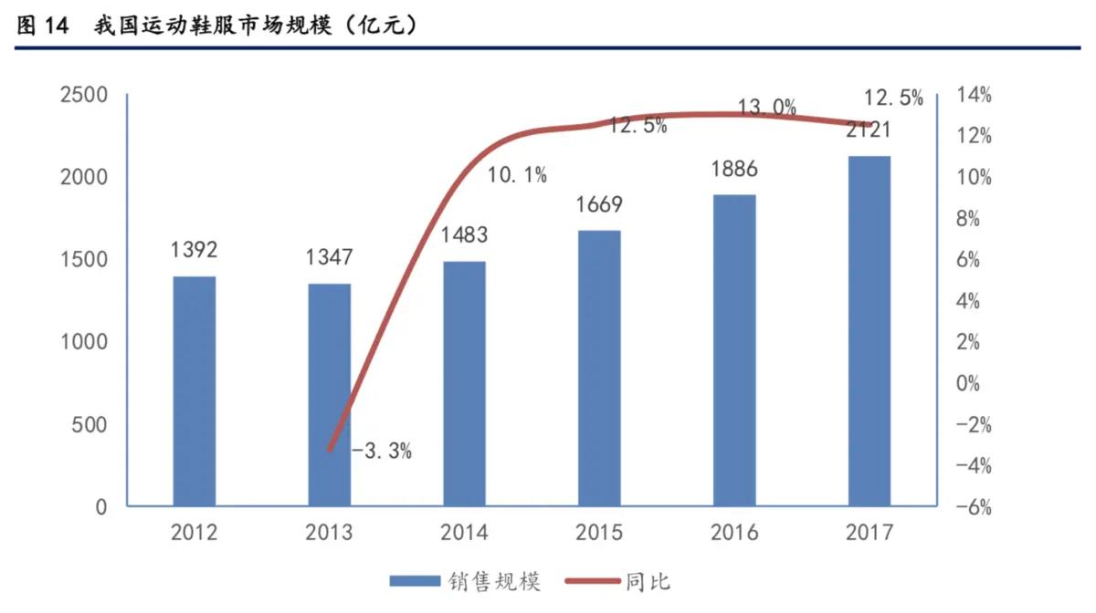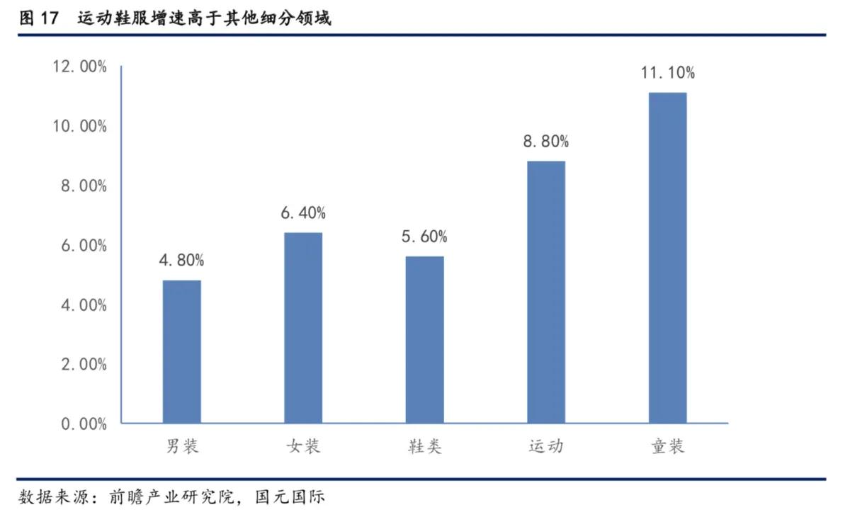 我國運動鞋服增速明顯快于其他服裝細分行業(yè)