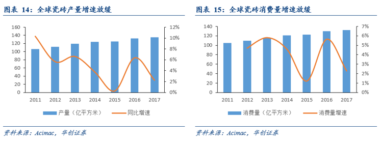 (一)全球瓷磚產(chǎn)銷量增速放緩