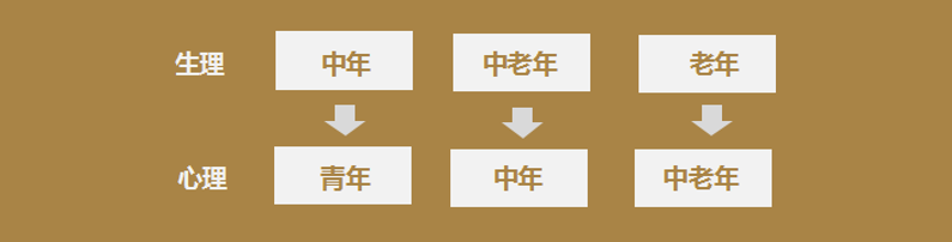 而中老年人的心理年齡比生理年齡普遍要下沉一個臺階。