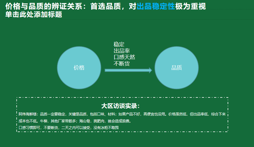 如果我們僅通過這一個問題得到的答案就為品牌戰(zhàn)略下定論,廚師看”價格“選東西是永遠不變的,這樣問題就走入死胡同,難道我們要通過打價格戰(zhàn)去攻破這個消費群體嗎?回到我們基本的常識判斷中來,“萬物皆有價格”,供求關(guān)系決定價格是經(jīng)濟學基本原理,人們會選擇對應符合自己購買能力的商品。