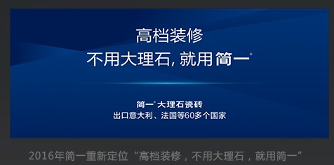 另一方面,為鞏固品類市場地位,簡一提出“高檔裝修,不用大理石,就用簡一”的高端定位,并推動大理石瓷磚技術(shù)、工藝、裝修標(biāo)準(zhǔn)的建立,通過舉辦“大理石瓷磚”高峰論壇等系列營銷推廣,大力投入教育品類市場,將大理石瓷磚從行業(yè)品類轉(zhuǎn)化為消費者品類,最終確立了大理石瓷磚品類第一品牌的地位。